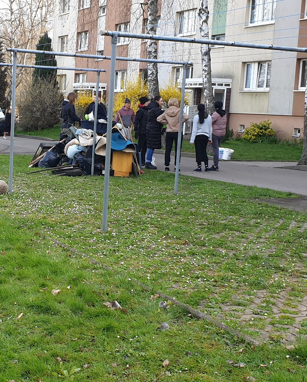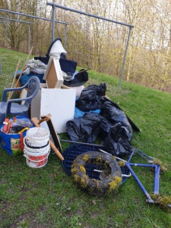 Die Freiwilligen hatten das Ziel, die Umgebung auf Vordermann zu bringen, sauberer und dadurch auch schöner zu machen. Vor allem der kleine Waldabschnitt vor den Häusern der Leipziger Straße war mit allerlei Unrat zugemüllt. Unmengen an Plastikmüll, Hygieneartikel, Autoreifen, alte Spielsachen, Gartenmöbel, Teppiche, Glasflaschen wurden zusammengetragen. Auch ein kleiner Teddybär lag einsam und weggeworfen mitten in der Grünanlage.