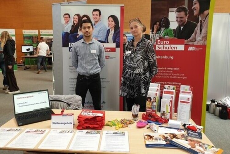 Hier konnten wir als Aussteller unsere Ausbildungen, Bildungsangebote und Sprachkurse, aber auch unsere Stellenausschreibungen präsentieren, mit Interessierten Kontakt aufnehmen und ins Gespräch kommen. Laut Pressemitteilung des Landkreises Altenburger Land kamen am Messe-Samstag rund 80 Aussteller, 5 Partner (Organisatoren) und 1.000 Besucher*innen zur Messe. Zu den Ausstellern zählten neben Unternehmen auch Bildungsträger, Verbände und Behörden.