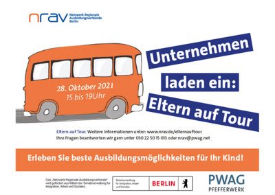 Am 28. Oktober 2021 heißt es für Eltern von interessierten Schüler*innen der Sekundarstufe I wieder „Einsteigen, bitte!“, um im Rahmen einer Bustour Ausbildungsbetriebe zu erkunden.