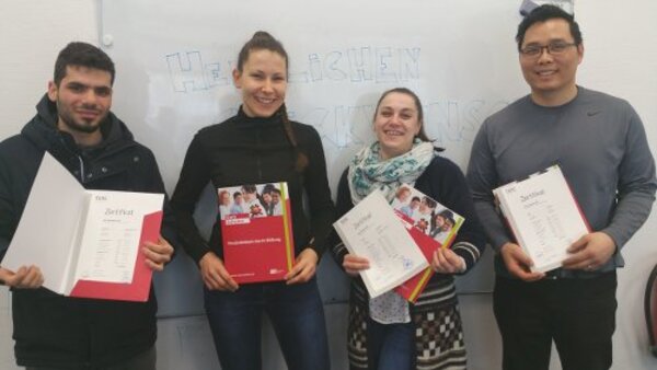 Die glücklichen Teilnehmer unseres berufsbezogenen Berufssprachkurses mit dem Zielniveau B2 freuten sich über die Ergebnisse ihrer Sprachprüfung. Nach dem Bestehen ergeben sich für sie neue Perspektiven und exzellente Chancen auf dem Arbeitsmarkt. Wir gratulieren allen, die das nächste Ziel auf ihrem Weg erfolgreich erreicht haben.