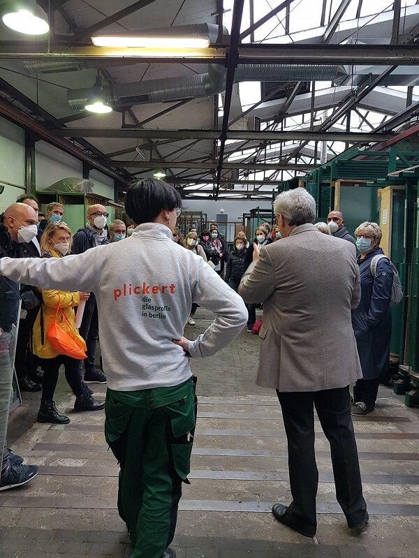 Die Tour startete im Unternehmen PLICKERT Glaserei-Betriebe. Hier wurde ein Überblick über das Unternehmen und seine Ausbildungsberufe gegeben. Anschließend erfolgte eine Werksführung durch die Werkhalle. Glas gehört zu den faszinierendsten Werkstoffen und begeistert uns täglich aufs Neue. Als innovativer Handwerksbetrieb arbeitet PLICKERT mit modernsten Maschinen und bietet vielfältige und individuelle Produkte aus Glas an.