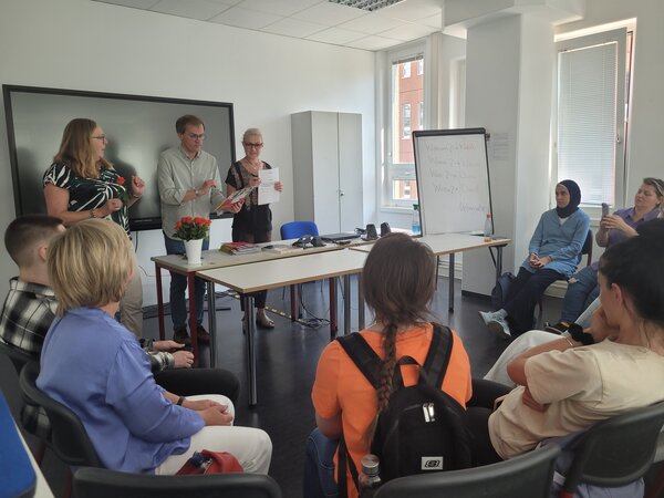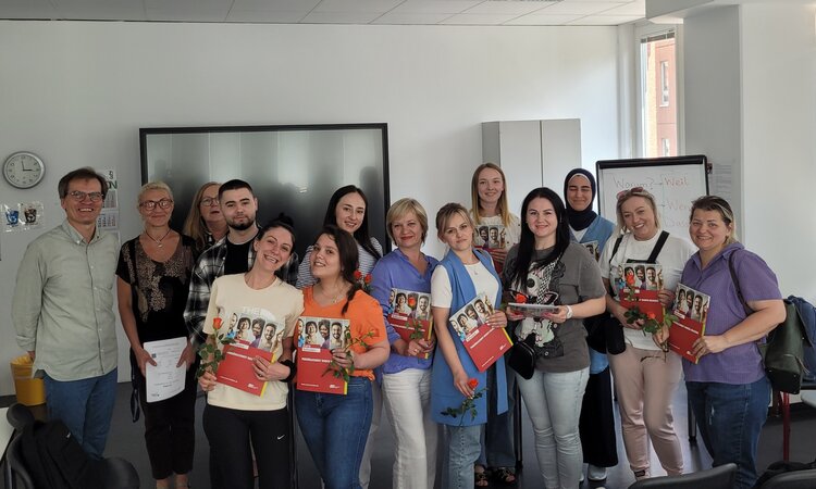 Für die Teilnehmer*innen war das aber noch nicht das Ende ihres Integrationskurses. Gleich im Anschluss startete der Orientierungskurs mit 100 Unterrichtseinheiten, in denen die Teilnehmer*innen alle kulturellen, gesellschaftlichen und historischen Aspekte des alltäglichen Lebens in Deutschland kennenlernten. Auch hier stand eine Prüfung an (am 14. Juni), die bei Bestehen die Grundlage für eine erfolgreiche Einbürgerung bildet.