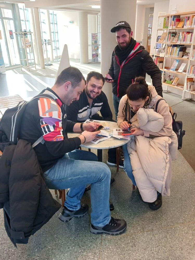 Am Freitag, dem 19. Januar 2024, führte es den Integrationskurs IK 190 der Euro-Schulen Berlin in die Humboldt-Bibliothek in Alt-Tegel, gefolgt von einem Abstecher zum Schloss Tegel. Bei schönstem Winterwetter tat der morgendliche Spaziergang im Park hinterm Schloss gut. Anschließend waren alle Kursteilnehmer*innen in der Bibliothek eifrig auf der Suche nach Details und Informationen, die im Rahmen eines von ihrer Dozentin Andrea König gestellten Quizes gefunden werden sollten. Auch konnten neue Bibliotheksausweise ausgestellt werden.