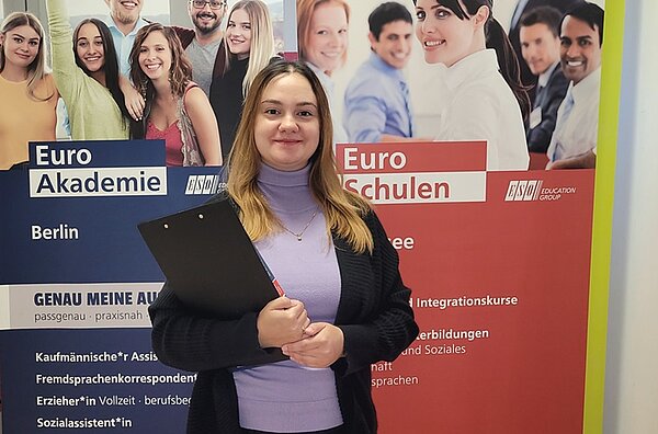 Im September 2023 begann für Nasro M. nicht nur der Berufssprachkurs B2, sondern sie trat auch den Vorbereitungskurs auf den Mittleren Bildungsabschluss an den Euro-Schulen Mainz an.