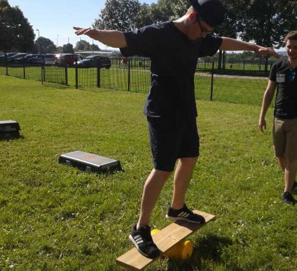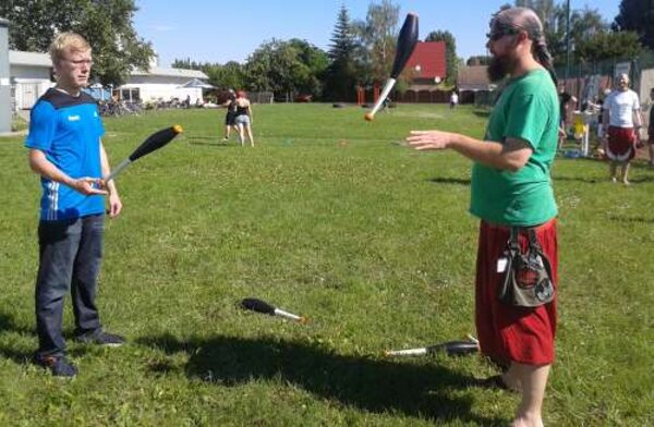 Zunächst einmal wärmten sich die Jugendlichen mit leichten Kraftübungen auf. Gerade in der EM-Zeit durfte bei den Fußballfans ein kleines Spiel nicht fehlen. Anschließend erkundeten die Teilnehmer die verschiedenen Workshops des „Circus Athleticus“. Es gab ein umfangreiches Angebot, bei dem für jeden etwas dabei war. So endeckten einige Jugendliche ihren Humor in der Clownschule, führten akrobatische Übungen durch, stapelten ihr eigenes Körpergewicht im Pyramidenbau oder balancierten durch einen Hindernisparcours.