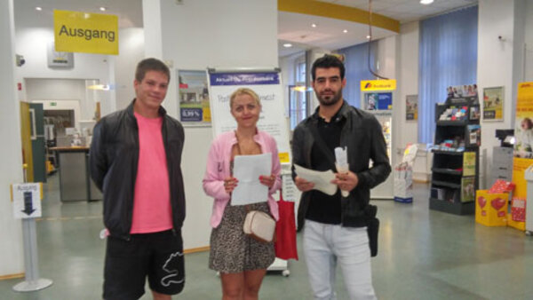 Die Teilnehmer des Integrationskurses 55 der <link internal-link>Euro-Schulen Zittau unternahmen im Rahmen des Unterrichts einen Stadtrundgang, um so ihre neue Heimat besser kennenzulernen. Dabei waren von ihnen verschiedene Aufgaben zu lösen, z.B. Informationen bei der Post, am Bahnhof und in Ämtern einzuholen.