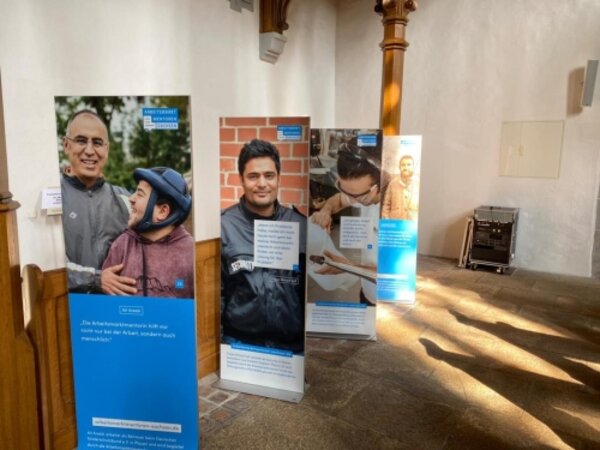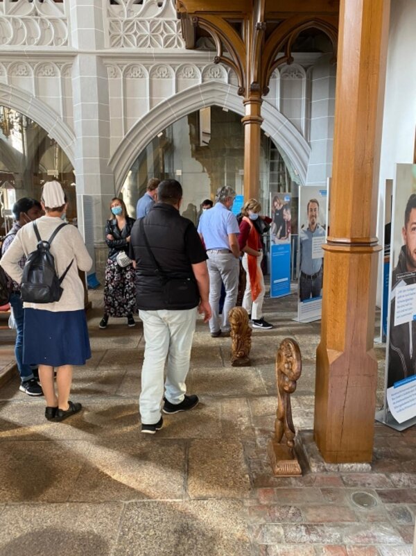 Zur Eröffnung der Interkulturellen Woche fand am 26.06.2021 ein ökumenischer Gottesdienst in der Frauenkirche Görlitz statt. Neben dem Gottesdienst konnten geladene Gäste und Besucher*innen die Ausstellung der Arbeitsmarktmentor*innen Sachsen "Integrationsgeschichten" sowie die Ausstellung "Zeitenwende“ besichtigen. Nach der Eröffnung des Gottesdienstes durch Pfarrerin Dörte Paul erklärte der Dezernent des LK Görlitz, Thomas Rublack, die Interkulturelle Woche für eröffnet und gab einen Ausblick auf die zahlreichen Veranstaltungen im Landkreis.