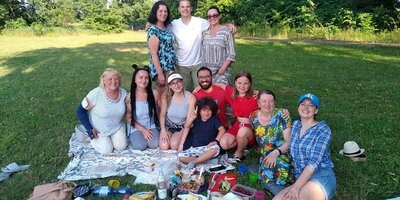 Die Teilnehmenden eines Integrationskurses der Euro-Schulen Gransee sind an einem See zu einer sogenannten Dish-Party zusammengekommen, auf der sich alle auf Anhieb sehr gut verstanden.