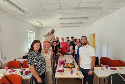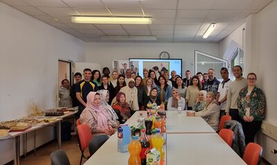 Grund zu feiern: zwölf Kursteilnehmende schließen erfolgreich ihren Integrationskurs ab und erreichen das B1-Niveau. Andere erreichen das Niveau A2.