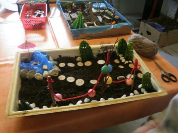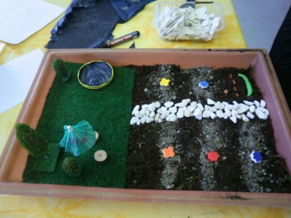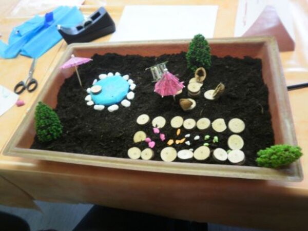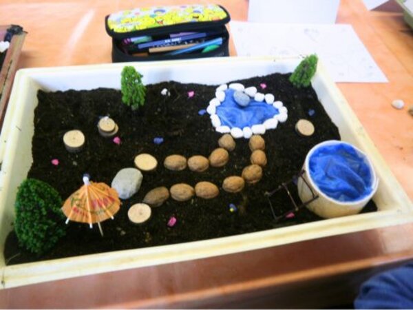Die Schüler*innen haben sehr viel Spaß dabei. Mit Begeisterung kreieren sie ihren Traumgarten. Sie merken sehr schnell, dass viel Geschick dazu gehört, die Materialien in die richtige Form zu bekommen. Oft nehmen die Schüler*innen ein Foto ihrer Idee mit, um den Umbau des heimischen Gartens den Eltern vorzuschlagen.