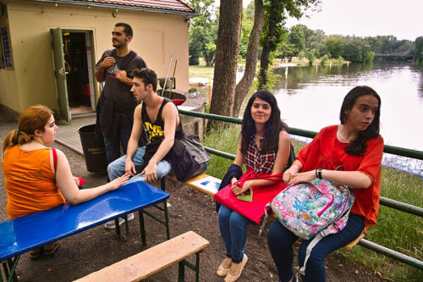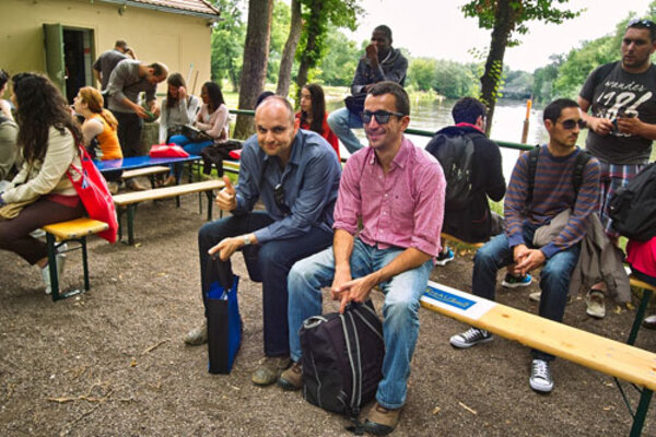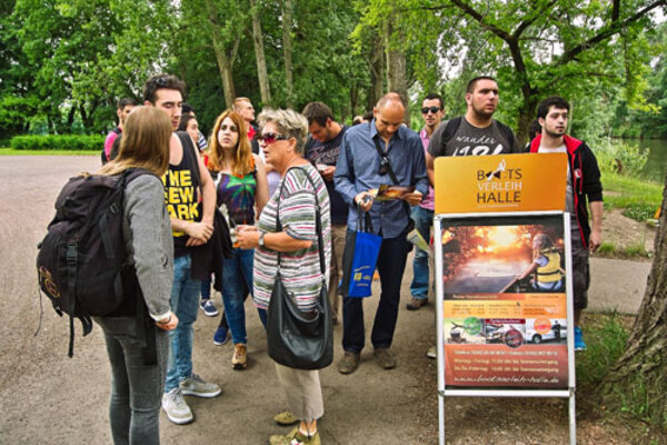 Die 1. Praktikumswoche MobiPro-EU-Teilnehmer aus Portugal neigt sich dem Ende zu. Der Donnerstag blieb der Erkundung der Peißnitzinsel vorbehalten. Sara und Deborah, die noch am Mittwoch als zukünftige Mitarbeiter der Firma Artis`Dent am 3. Firmenlauf teilgenommen hatten, finden sich mittlerweile schon gut zurecht. Der erste „Berg“ am Riveufer wurde bereits erklommen - sozusagen als Gleichnis für die ab nächster Woche anstehenden Aufgaben in den jeweiligen Firmen.