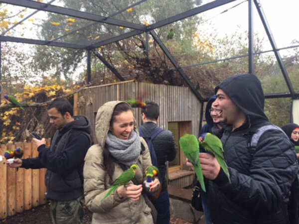 Wir haben aber nicht nur in der Theorie gearbeitet, sondern gemeinsam auch einige Ausflüge unternommen, z. B. in den Zoo mit Tierkontakt bei den Loris, zum Eislaufen in der Eissporthalle, die Besichtigung der Franckeschen Stiftungen, der Marktkirche und natürlich auch Betriebsbesichtigungen, z. B. bei der Firma Papenburg.