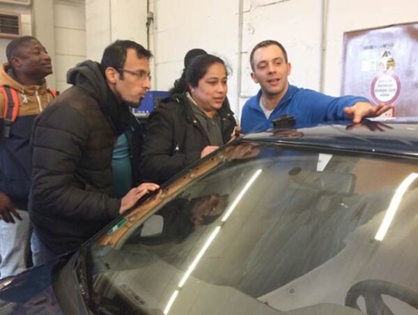 So konnten sich die Teilnehmer über verschiedenste Angebote für eine Ausbildung informieren und dabei unter Anderem selbst ausprobieren, wie man als geschulte "Smart-Repair-Fachkraft" bei einem Fahrzeug "Dellen ohne Lackieren entfernen" kann.