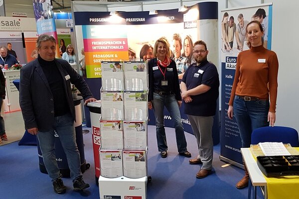 Auch in diesem Jahr wurden unsere Erwartungen nicht enttäuscht. Eine Vielzahl von Interessierten erkundigte sich an unserem Messestand in Halle 1 über ihre <link https: www.euroakademie.de _blank internal-link an der euro akademie>Ausbildungsmöglichkeiten bei uns in den Bereichen Gesundheit & Pflege, Pädagogik & Soziales und der <link https: www.euroakademie.de _blank internal-link fachoberschule>Fachoberschule, sowie den <link _blank internal-link der euro-schulen>Bildungsangeboten der Euro-Schulen Halle.