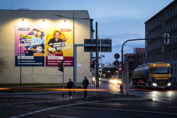 Seit Anfang April kommt keiner, der die Kreuzung Ernst-Rudolph-Weise Straße/ Merseburger Straße, nahe dem Riebeckplatz – dem wichtigsten Verkehrskontenpunkt Halles – passiert, an der neuen Werbung für die Euro-Schulen und die Euro Akademie Halle vorbei.