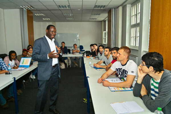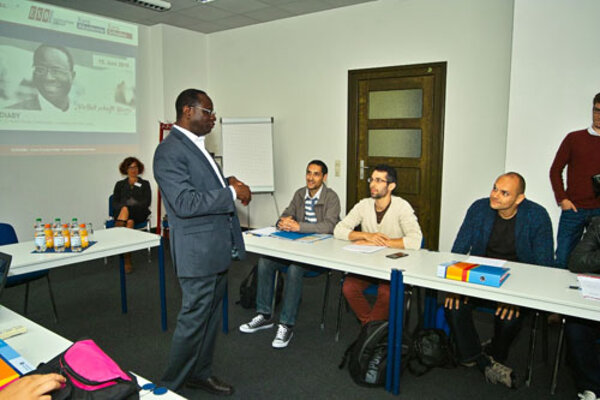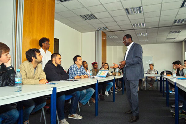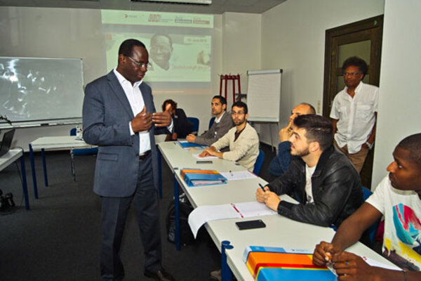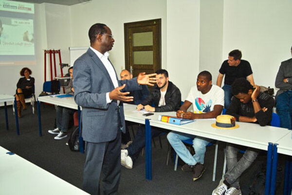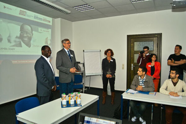Alles ist möglich! – das könnte die Überschrift zum 3. Tag im Praktikum der 31 portugiesischen Ausbildungsanwärter gewesen sein, die an den Euro-Schulen Halle bei der Vorbereitung auf eine Ausbildung in Deutschland begleitet werden. Zu Gast war am 15. Juni das Mitglied des deutschen Bundestages Dr. Karamba Diaby, der als Abgeordneter für die SPD die Stadt Halle in Berlin repräsentiert. Er informierte sich bei seinem Besuch über das Projekt MobiPro-EU an den Euro-Schulen Halle.