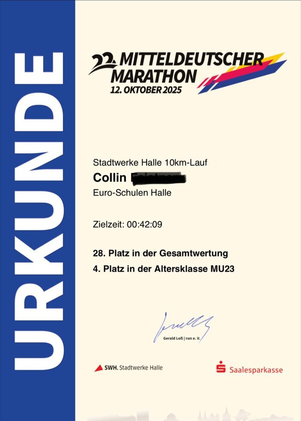 Die Euro-Schulen Sachsen-Anhalt-Süd GmbH waren beim 22. Mitteldeutschen Marathon in Halle (Saale) sportlich präsent: Mit dem Team Halle starteten wir im 4er-Staffel-Halbmarathon und zeigten, wie viel Energie, Ausdauer und Zusammenhalt in unserer Schulgemeinschaft steckt. Unterstützt wurden wir dabei vom Team Bitterfeld-Wolfen, das die Staffelstrecke ebenfalls erfolgreich absolvierte – ein schönes Zeichen für den standortübergreifenden Teamgeist.