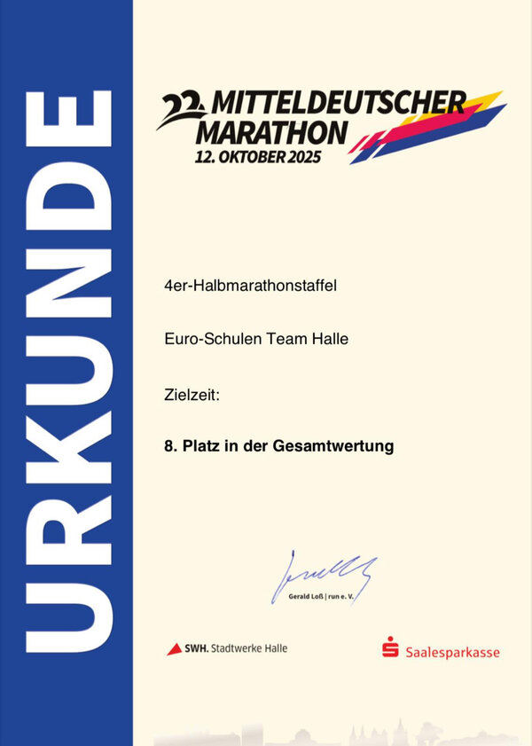 Heimspiel mit Teamgeist: Euro-Schulen Halle beim 22. Mitteldeutschen Marathon