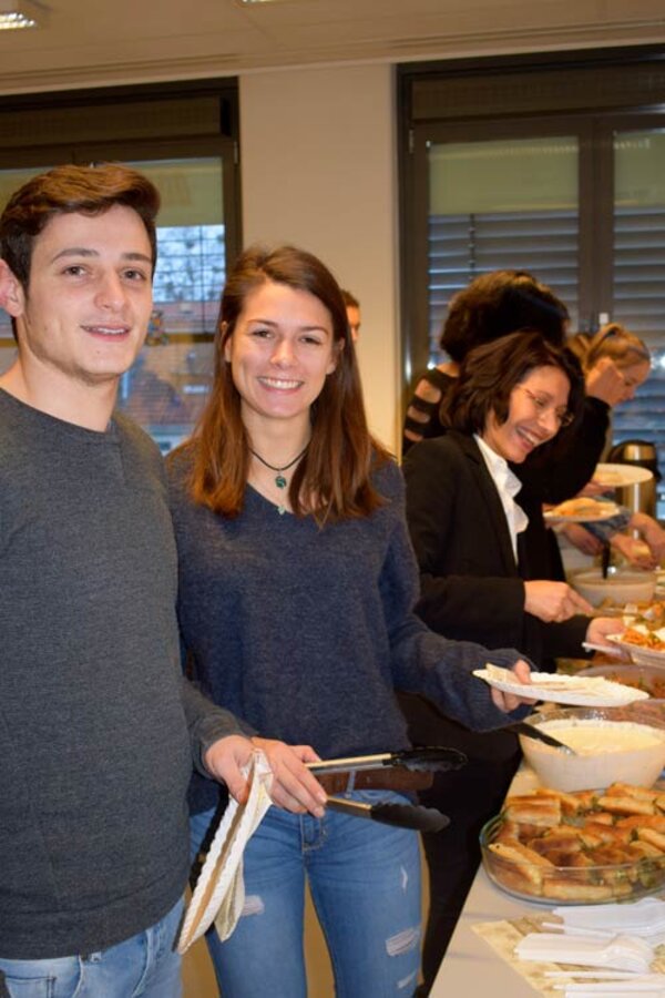 Die <link https: www.euroakademie.de hannover _blank external-link-new-window akademie>Euro Akademie Hannover verabschiedete am 20. Dezember mit einer Weihnachtsfeier ihre Schüler in die wohlverdienten Weihnachtsferien. Gölistan Khalaf, Verwaltung & Sekretariat, organisierte zusammen mit den Schülern ein mit internationalen Spezialitäten beladenes Frühstücksbuffet. Auch Mesut und Meryem, die die Cafeteria der Schule betreiben, steuerten etwas bei.