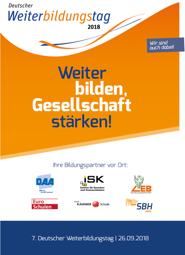 Besuchen Sie uns am 26. September 2018 im Rahmen des deutschen Weiterbildungstages! Informieren Sie sich über unser Bildungsangebot oder lassen Sie sich in einem persönlichen Gespräch von uns beraten. Wir freuen uns auf Sie!