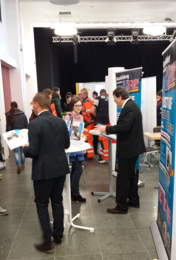 Berufsvorbereitenden Bildungsmaßnahme (BvB) nutzten die Veranstaltung, um sich bei namenhaften Betrieben über die verschiedenen Ausbildungsmöglichkeiten zu informieren. Im Vorfeld wurden die Bewerbungsunterlagen erstellt und konnten dann vor Ort den anwesenden Personalverantwortlichen überreicht werden.