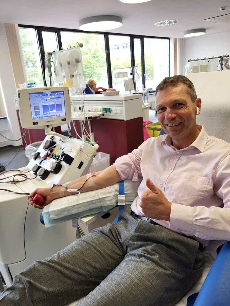 Unser Kollege Oliver Baro hat sich in der Medizinischen Hochschule Hannover für eine besondere Form der Blutspende entschieden: die Thrombozytenspende. Die Prozedur dauert länger als sonst, wenn es um eine Thrombozytenspende geht. Diese Blutplättchen werden besonders dringend gebraucht – selbst diese renommierte Hochschule hat einen großen Bedarf. Oliver möchte somit Vorbild sein und andere Kolleg*innen ebenfalls inspirieren, einen ganzen Tag bezahlte Freistellung für den Social Day zur Unterstützung eines sozialen Projekts, oder einen halben Tag zur Blutspende zu beantragen! Mit diesem Engagement setzt Oliver definitiv ein starkes Zeichen und zeigt, wie auch Kolleg*innen einen Social Day nutzen könnten, um Leben zu retten!