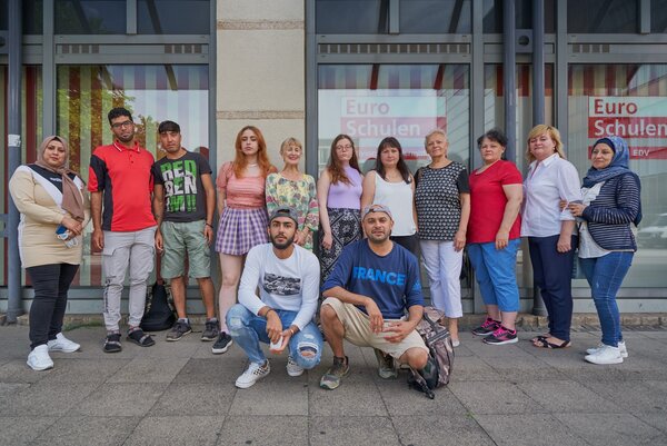 Nach unserer erfolgreichen Wiederzulassung als Träger von Integrationskursen konnten wir an den Euro-Schulen Hannover im Juli den ersten Integrationskurs starten. Wir begrüßen hier Teilnehmende aus vier Nationen – unter ihnen auch Geflüchtete aus der Ukraine. Einige Teilnehmende, die später einsteigen, fehlen auf dem Foto noch. Sie alle werden in den folgenden Monaten gemeinsam mit unserer neuen Kollegin Frau Heidi Beutler ein umfangreiches Pensum zu bewältigen haben. Zu Beginn werden im Sprachkurs wichtige Themen aus dem alltäglichen Leben behandelt, zum Beispiel Wohnen, Einkauf, Freizeit, Bildung, Gesundheit. Daneben steht die schriftliche Kommunikation auf dem Lehrplan: Briefe und Mails, Formulare, aber auch Telefonate und Bewerbungen. Dieser Teil wird mit einer Prüfung abgeschlossen – Weihnachten wird es soweit sein. Wir wünschen allen viel Erfolg!