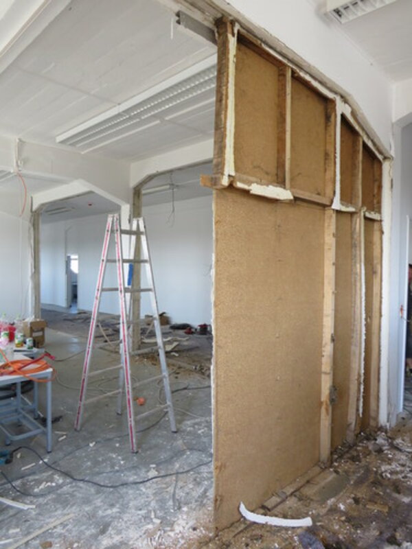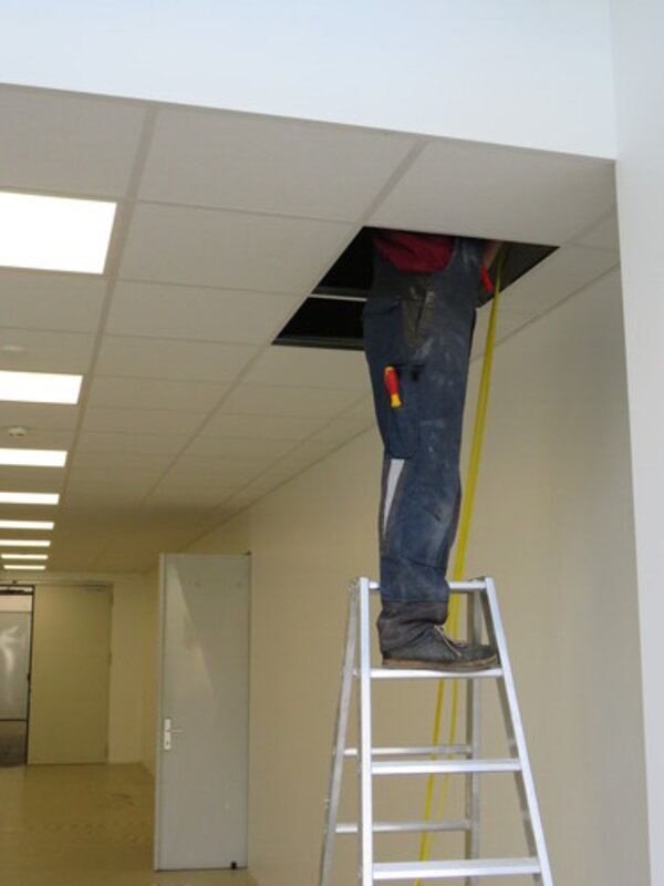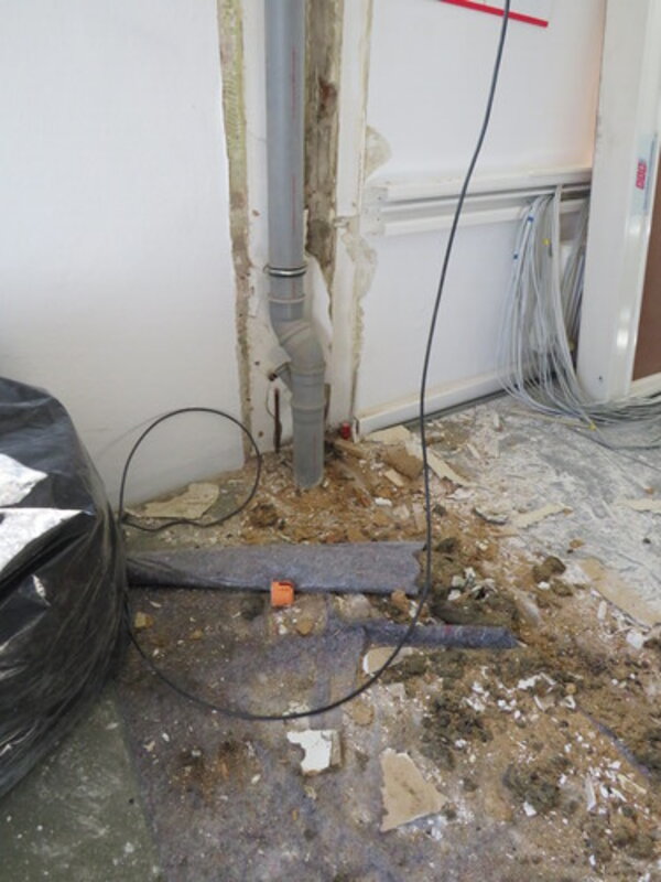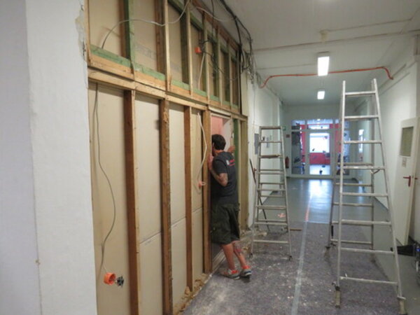 Die Ursache des Lärms ohne Schüler*innen: Die Grundlagen für die Umsetzung des Digitalpaktes sollten geschaffen sowie Auflagen des Brandschutzes umgesetzt werden. Mehrere Elektro- und Baufirmen sind dafür im Einsatz. Wände wurden entfernt und auch so manche Decke musste für die Kabelverlegung geöffnet werden.