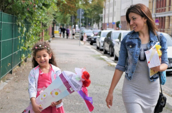 Für Saya galt es schnell einen Kindergartenplatz zu finden, was schon nach einer kurzen Wartezeit gelang. Nach nur drei Monaten konnte die kleine Tochter bereits sehr gut Deutsch sprechen, da auch zu Hause viel Deutsch gesprochen wird. Im September 2020 kam sie in die Schule – stolz trägt sie ihren Schulranzen, begleitet von ihrer glücklichen Mutter.