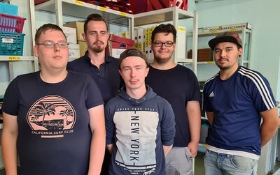 Die angehenden Fachlageristen der Reha-Ausbildung freuen sich über die bestandene Probezeit und den weiteren Ausbildungsverlauf.