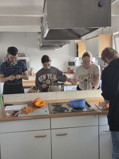 Die angehenden Verkäufer*innen der Euro-Schulen Hoyerswerda widmen sich dem Gemüse und bereiten daraus ein köstliches Mittagessen.