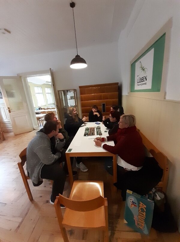 Hier absolvierten wir zunächst ein Teamtraining zum besseren Kennenlernen. Am Mittwoch trafen wir uns 09:30 Uhr an den Euro-Schulen. Erst einmal gab es eine kurze Belehrung und das Gepäck wurde verladen, bevor wir in Richtung Spreewald aufbrachen. Nach einer reichlichen Stunde erreichten wir unser Ziel, wo uns unsere Psychologin schon erwartete. Sie verbrachte den Rest des Tages mit uns.
