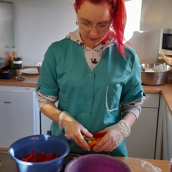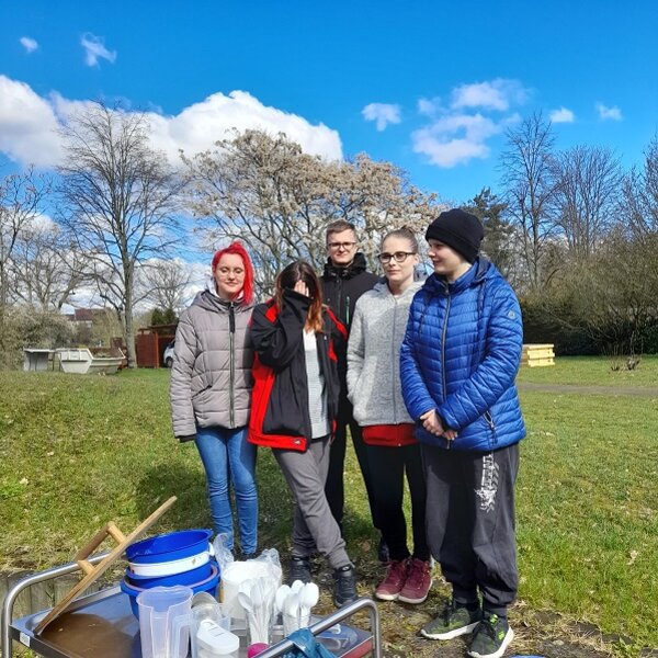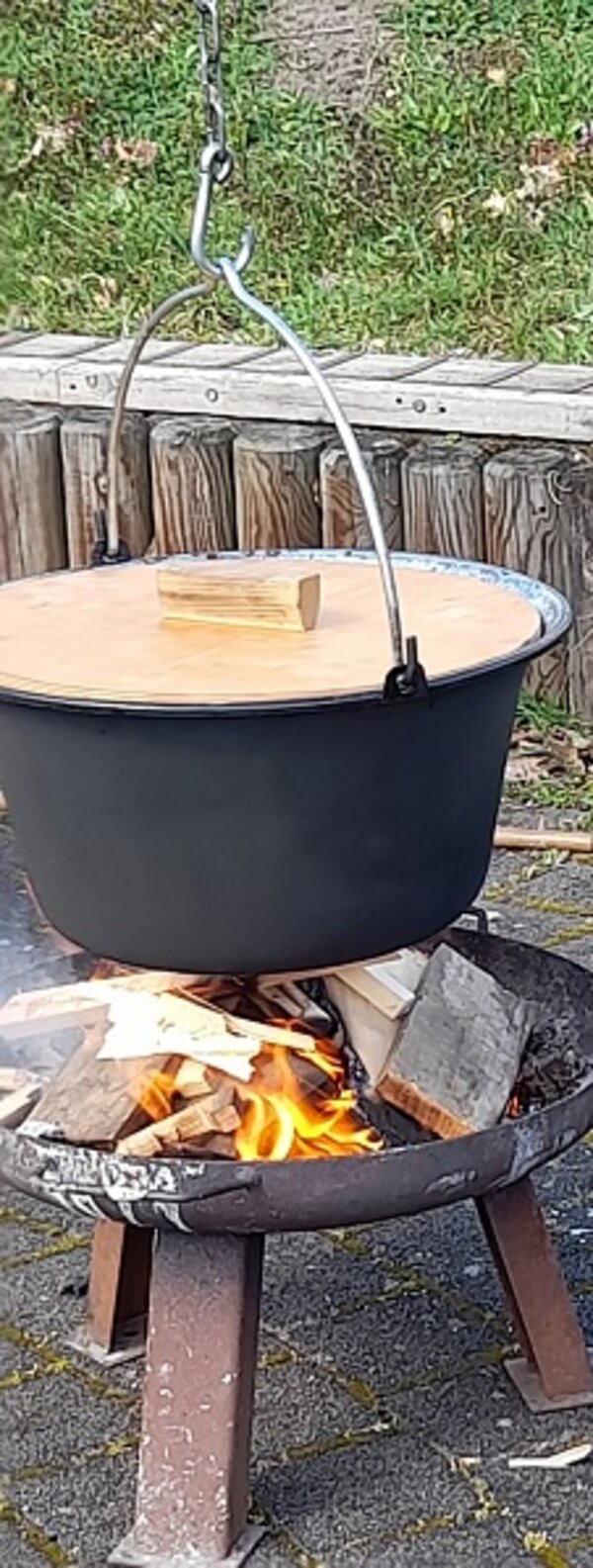 Wir, die Auszubildenden der Verkäuferklasse 2022, waren für die Zubereitung des “Bauerntopfes“ beim diesjährigen Osterfeuer am 4. April 2023 verantwortlich. Dazu putzten und schnippelten wir Kartoffeln, Möhren, Zwiebeln und Paprika. Lucas rührte inzwischen die Soße an und mit der Hilfe unseres Hausmeisters Herr Weigend zündeten wir das Osterfeuer an und hingen unsere gefüllten Kessel über das Feuer.
