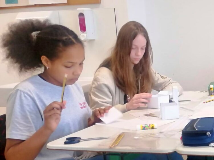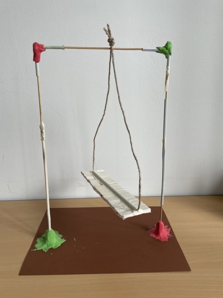 An den Gruppenaufgaben arbeiteten dann gemeinsam jeweils vier Schüler*innen. So war es z. B. die Aufgabe, ein Zeltlager bzw. einen Jahrmarkt anhand einer vorgegebenen Gegenstandsliste zu planen. Einige Schüler*innen bedachten dabei sogar das Thema Nachhaltigkeit mit Grünflächen und Solaranlagen. Aus verschiedenen Materialien entstanden u. a. ein Kettenkarussell oder eine Schiffschaukel für den Jahrmarkt. Hierbei konnten Eigenschaften wie Team- und Problemlösefähigkeit sowie Durchhaltevermögen, die für die spätere Berufswahl wichtig sind, beobachtet werden.