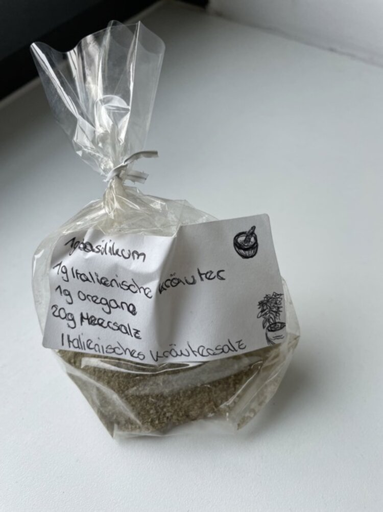 In den Einzelaufgaben wurde z. B. ein Kräutersalz hergestellt. Dabei mussten die Schüler*innen verschiedene Zutaten auswählen und daraus am Ende das Salz herstellen. Auch die Verpackung inklusive Etikett musste gestaltet werden. Die zweite Aufgabe, die allein durchgeführt wurde, war die Herstellung einer Zettelbox zur Aufbewahrung von Lernkärtchen. Diese beiden Aufgaben dienen vor allem der Beurteilung motorischer Fähigkeiten sowie dem ordnungsgemäßen Arbeiten nach einer Anleitung.