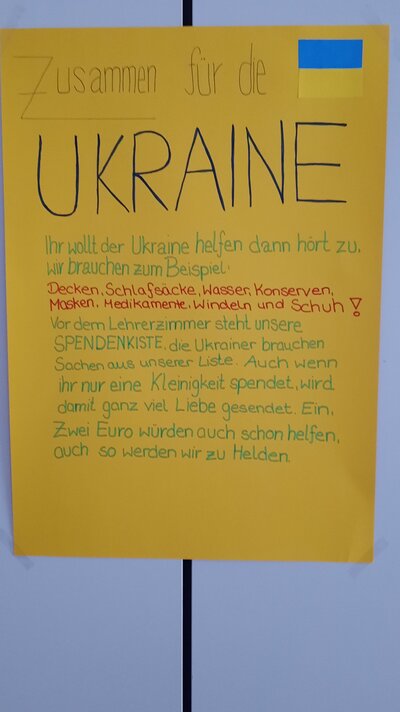 Decken, Schlafsäcke, Medikamente und Windeln – all das wird von den Geflüchteten gerade dringend gebraucht. Unsere Schüler*innen organisieren deshalb eine Sammelaktion für Sach- und Geldspenden.