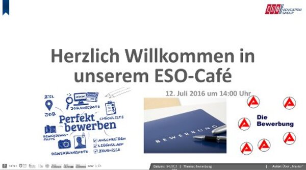 ESO-Cafè eingeladen. Ehemalige Teilnehmer haben gemeinsam mit der Lehrerin Frau Zeller diese Idee geboren. Sich treffen, unverbindlich plaudern und dabei Information zu bestimmten Themen erhalten, ist das gemeinsame Ziel.