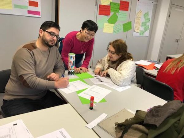Die Teilnehmer werden mit unterschiedlichsten Lernmethoden vertraut gemacht. Kleingruppenarbeit und das Erstellen von Plakaten gehören genauso dazu wie die Arbeit an Laptops. In Zweiergruppen werden die Teilnehmer an das E-Learning herangeführt. Die Gruppenarbeit ist eine gute Vorbereitung auf die Arbeitswelt, denn Teamwork wird oft gefordert.