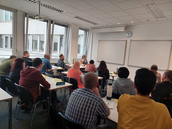 Heute ist an den Euro-Schulen am Standort in Dresden der 100. Berufssprachkurs des Sprachniveaus C1 gestartet. Wir freuen uns, 15 Teilnehmende in diesem Kurs begrüßen zu können. Dieser Kurs hat das Ziel, in 400 Unterrichtseinheiten, aufbauend auf dem Sprachniveau B2, nach Abschluss des C1-Kurses einen breiten allgemein- sowie berufsbezogenen Wortschatz anwenden zu können, im Berufsalltag umgangssprachliche Wendungen und idiomatische Ausdrücke zu verstehen sowie komplexe kommunikative Aufgaben im Beruf bewältigen.