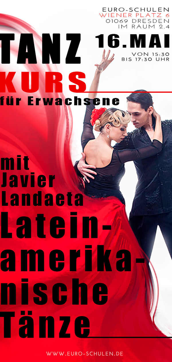 Wir freuen uns auf den Tanzkurs am 16. Mai 2023 von 15:30 Uhr bis 17:30 Uhr in den Räumen der Euro-Schulen am Wiener Platz 6 in Dresden.