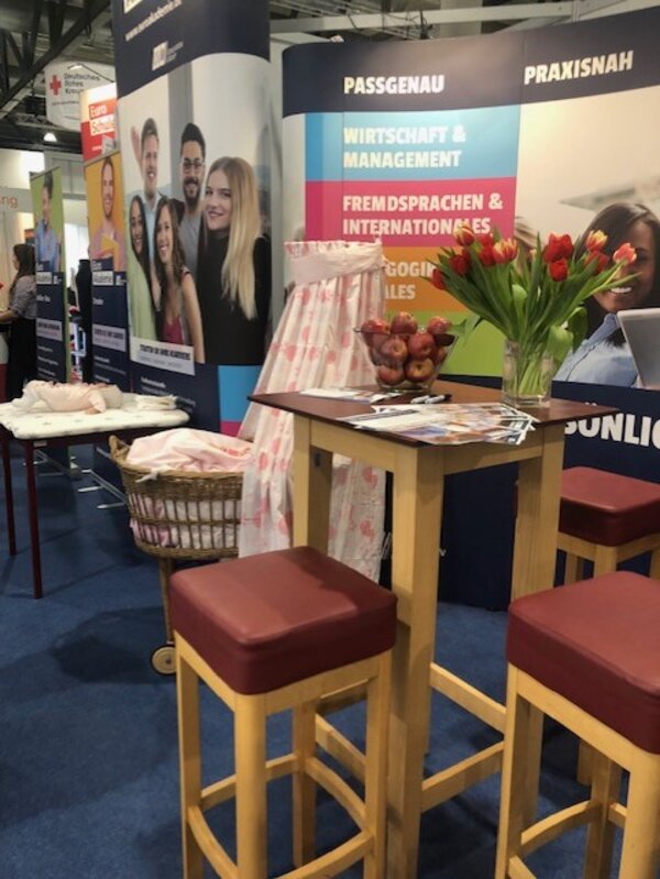 Auch die Fachoberschule für Wirtschaft und Verwaltung sowie Gesundheit und Soziales hat viele interessierte Besucher*innen an unseren Messestand gelockt. Mit verschiedenen Aktionen am Messestand konnten so erste Kontakte geknüpft und sich in ganz entspannter Atmosphäre über mögliche zukünftige Bildungswege informiert werden. Zudem konnten unsere Mitarbeitenden der Euro-Schulen zukünftige Teilnehmer*innen zu stattfindenden Sprachkursen und Prüfungen informieren.
