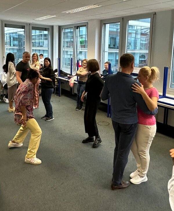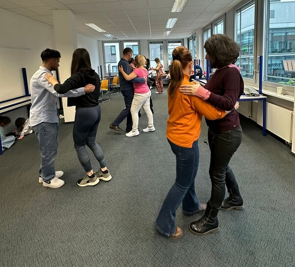 Gemeinsam mit den Dozentinnen der Sprachkurse haben unsere Teilnehmenden einen Tanzkurs für lateinamerikanische Tänze während des Unterrichts geplant und nun einen musikalischen und bewegungsreichen Nachmittag verbracht. Der Tanz und die Musik sollen dabei die Freude an der Bewegung und das Erlernen der deutschen Sprache verbinden.