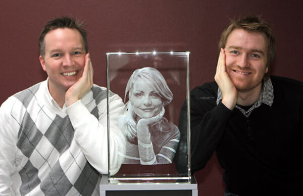 Zu ihren Bestsellern gehört ganz klar das 3D Laser Foto, bei dem das Kundenfoto zunächst in 3D modelliert und anschließend mit moderner und präziser Lasertechnik in hochwertiges Glas gelasert wird.