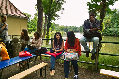 Die 1. Praktikumswoche MobiPro-EU-Teilnehmer aus Portugal neigt sich dem Ende zu. Der Donnerstag blieb der Erkundung der Peißnitzinsel vorbehalten. Sara und Deborah, die noch am Mittwoch als zukünftige Mitarbeiter der Firma Artis`Dent am 3. Firmenlauf teilgenommen hatten, finden sich mittlerweile schon gut zurecht. Der erste „Berg“ am Riveufer wurde bereits erklommen - sozusagen als Gleichnis für die ab nächster Woche anstehenden Aufgaben in den jeweiligen Firmen.