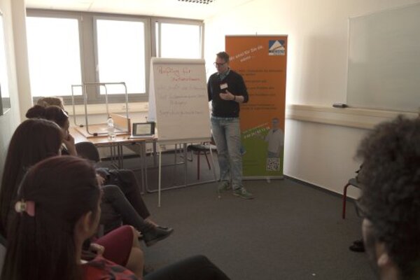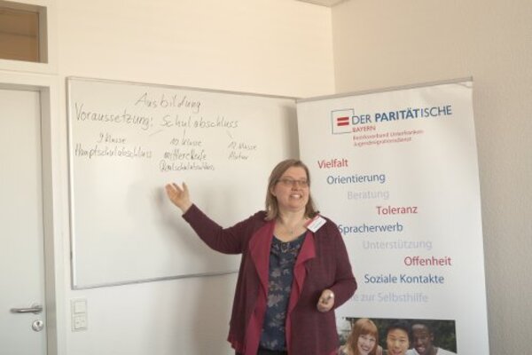 Die Teilnehmer der Integrationskurse hatten die Möglichkeit, sich bei den Ausstellern über freie Stellen, Berufsbilder unterschiedlicher Ausbildungen sowie den Leistungen und Aufgaben der jeweiligen Einrichtung zu informieren. Auch über die Anforderungen an Bewerber auf dem Arbeitsmarkt und die Möglichkeiten der Berufsfindung konnten sie sich Klarheit verschaffen. Die Veranstaltung vermittelte außerdem die große Bedeutung des Erwerbs der deutschen Sprache.
