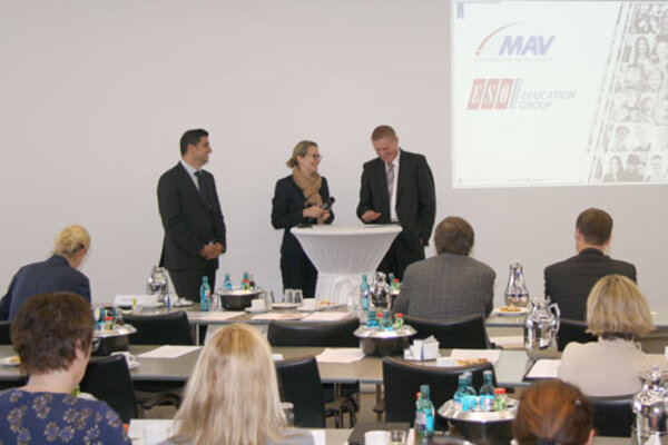 Etwa 40 Vertreter unterschiedlicher Wirtschaftsverbände waren zu dem Erfahrungsaustausch eingeladen. Ziel war es Best-Practice-Beispiele aus NRW zu präsentieren. Das Modell der Euro-Schulen wurde insbesondere wegen der Verzahnung von Theorie und Praxis gewürdigt.