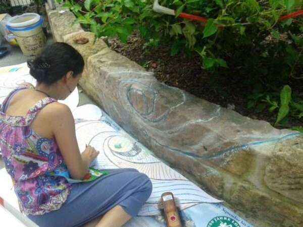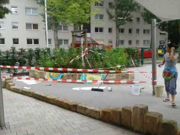 Gemeinsam mit Frau Kreismann entschieden sich Laura und Paula für ein Praktikum im künstlerischen Bereich. Ihr Ziel war es, mehr Freude durch Farbe auf den Spielplatz der Kita zu bringen. Daher gestalteten sie dort ein buntes Mosaik.