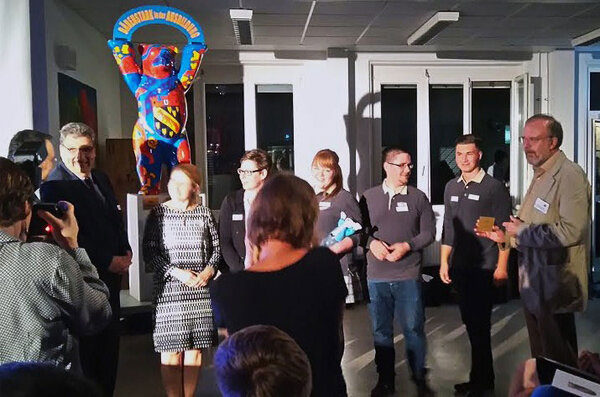 Die Übergabe der Buddybären an die vier siegreichen Unternehmen erfolgte am 29. September 2016 in der Bettina-von-Arnim-Schule. Die Bettina-von-Arnim Schule stellte ihre Aula für die Ehrung der Sieger bereit und unterhielt die Gäste mit einem ansprechenden musikalischen Rahmenprogramm.