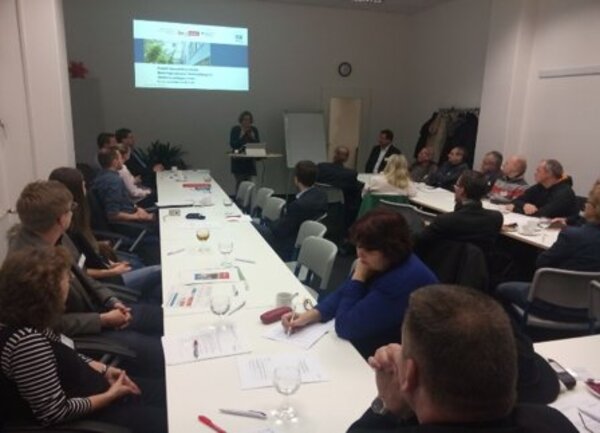Frau Mohoric, Projektkoordinatorin des Forschungsinstituts Betriebliche Bildung (f-bb) gGmbH präsentierte das neue Projekt „Queraufstieg Berlin, ein Beratungsnetzwerk Berufsbildung für Studienaussteiger/innen“. Die Teilnehmer erhielten wichtige Informationen zu den Möglichkeiten des Projekts.