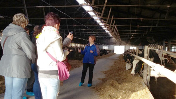 „Um 10:00 Uhr begann unsere Tour in Hygienebekleidung durch den Betrieb. In der Milchviehanlage mit Schaukäserei und Biogasanlage konnten wir einen geschlossenen Wiederverwertungskreislauf erleben.